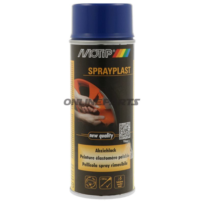 Produkt: Motip Peel Paint Spraykunststoff 400 ml (GTIN: 4048500433498, MPN: 553.35.59). Dieser abnehmbare Sprühfilm wurde zur vorübergehenden Schutz- oder Veränderung des Aussehens auf nicht absorbierenden Untergründen bei Motorrädern, Teilen und Zubehör entwickelt.