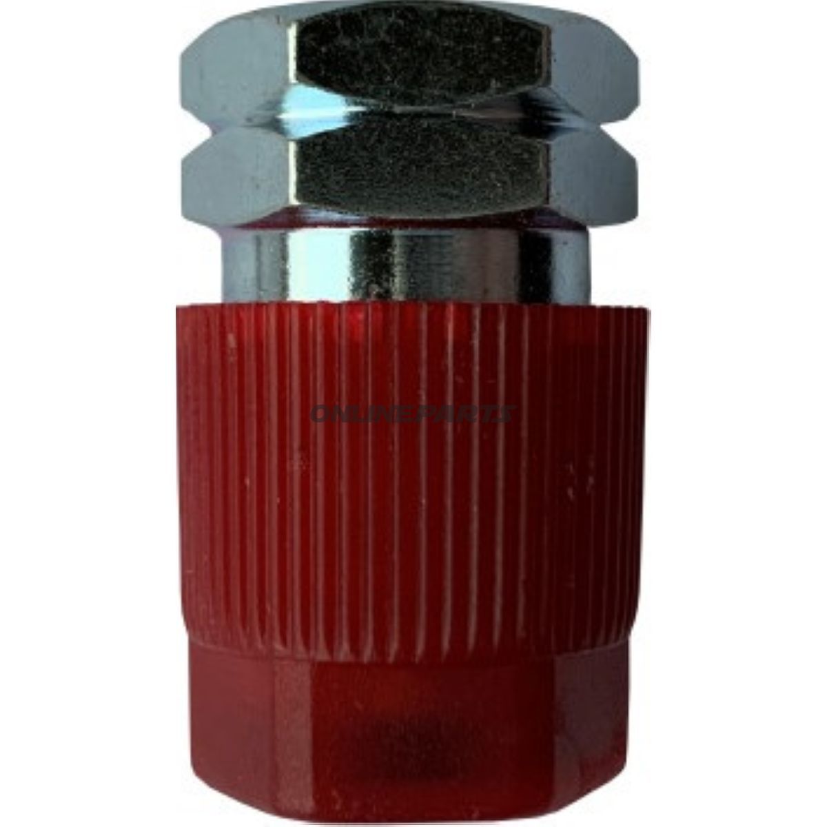 - Rote Schutzkappe: Die Kappe schützt Gewinde und Ventil vor Verschmutzung und Beschädigungen während Lagerung oder Transport und macht die Verbindung bei Wartungsarbeiten sichtbar.