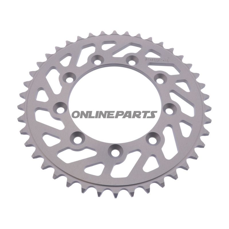 Mit einer gewichtsparenden Konstruktion aus Aluminium bietet dieses Kettenrad eine Kombination aus Stärke und Leichtigkeit, die entscheidend für die Leistung auf der Motocross-Strecke oder in Offroad-Situationen ist. Aluminium ist ein Material, das für seine Widerstandsfähigkeit gegenüber Korrosion und Abrieb bekannt ist, was es ideal für den Einsatz in herausfordernden Umgebungen macht. Die silberne Oberfläche sorgt nicht nur für ein ästhetisches Erscheinungsbild, sondern stellt auch sicher, dass die Oberfläche leicht zu pflegen ist.