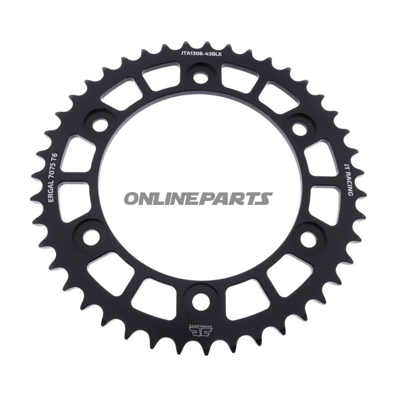 Hinterradritzel JT Sprockets JTA1308.43BLK Für 520er Kette. Aluminium, 43 Zähne, Innendurchmesser 134 mm, Lochkreis 160 mm. Passend für mehrere Modelle – Modell/Baujahr in der Liste prüfen.