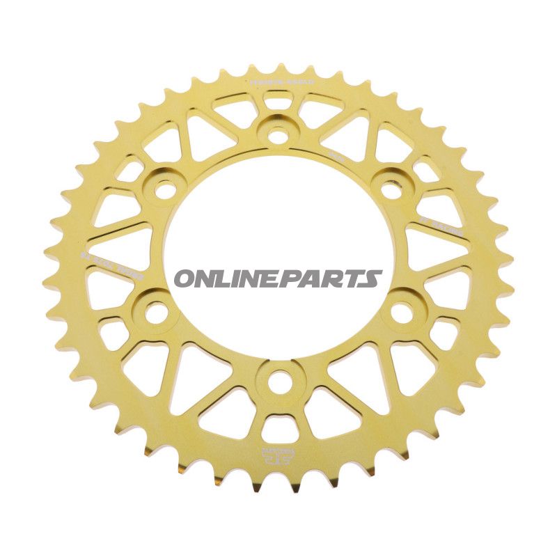 Das Hinterrad ist aus Aluminium gefertigt, einem Material, das für sein geringes Gewicht und seine Festigkeit bekannt ist. Die Eigenschaften von Aluminium machen es ideal für Motorräder, da es zur Reduzierung des Gesamtgewichts beiträgt, was die Beschleunigung und Handhabung verbessert. Das Hinterrad hat einen Zahnabstand von 43 Zähnen und eine Teilung von 525, was eine optimale Balance zwischen Beschleunigung und Geschwindigkeit gewährleistet.