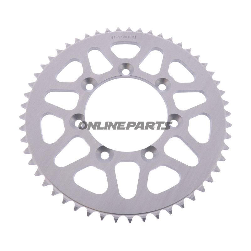 Alukettenrad 53T Teilung 428 in Silber von ESJOT ist ein zuverlässiges Bauteil, das entwickelt wurde, um die Kraftübertragung an Ihrem Motorrad zu optimieren. Dieses Kettenrad ist speziell für TM Racing-Modelle gefertigt, was es ideal für Motocross- und Offroad-Fahrten macht. Das Kettenrad befindet sich an der Hinterseite des Motorrads und arbeitet zusammen mit der Kette und dem Zahnrad an der Kurbelwelle des Motors, um die Motorleistung auf das Hinterrad zu übertragen.