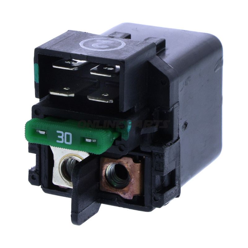 Dieses Starterrelais ist eine elektrische Komponente in der Startschaltung. Die Hauptfunktion des Relais besteht darin, den Strom vom Akku zum Anlasser über den Zündschlüssel oder den Startknopf zu steuern, sodass ein Niedrigstromsignal aus dem Zündsystem den hochstromverbrauchenden Anlasser aktivieren kann, ohne große Ströme durch den Schalter im Fahrerbedienfeld zu leiten. Das Relais wird typischerweise in der Nähe des Akkus oder im Inneren des elektrischen Gehäuses des Rahmens montiert, abhängig von der Bauweise des Modells.