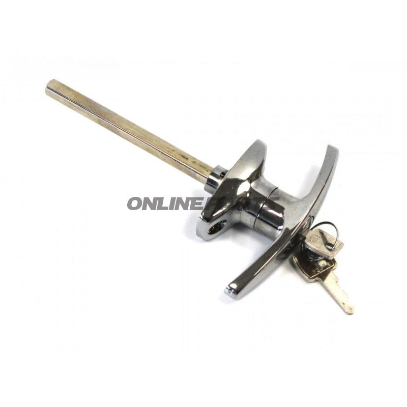 Das Produkt mit der MPN 338.08.71 (GTIN 76501539) ist eine vollständige äußere Verriegelungseinheit, vorgesehen für Anhänger und Pferdeanhänger, ausgeführt als T-förmiger Griff mit eingebautem Verriegelungszylinder. Die folgende Beschreibung erläutert Funktion, Materialwahl, Anwendung und relevante Eigenschaften für Mechaniker und Motorradbesitzer, die eine robuste äußere Verriegelungslösung suchen.
