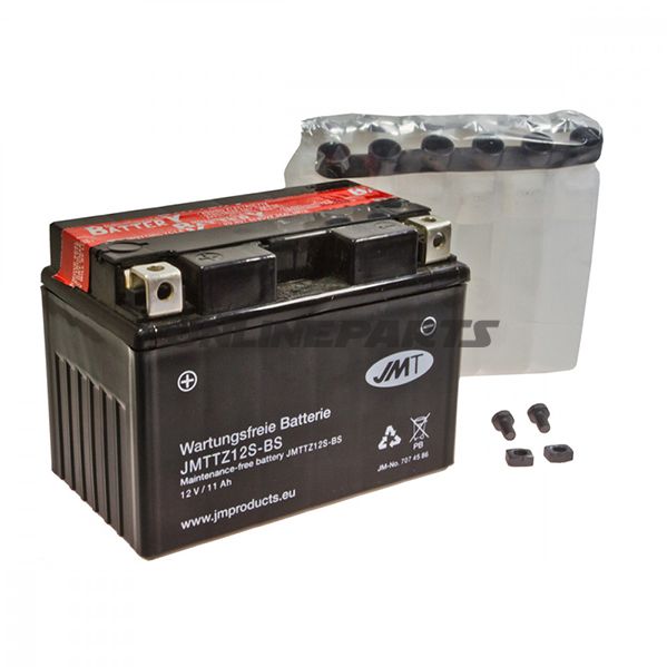 Motorradbatterie JMT JMTTZ12S-BS ACID Wartungsfreies Starterbatterie. Trocken, unbefüllt geliefert; auslaufsicheres Vlies und verbesserte Kaltstartleistung.