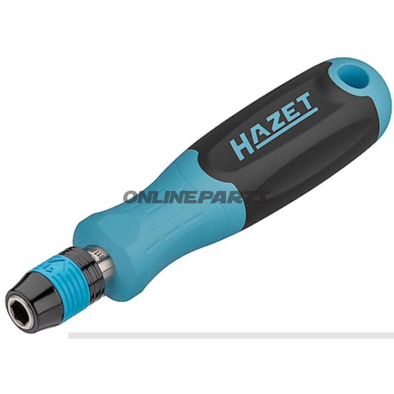 Der Bithalter verfügt über einen sechskantigen Greifer aus Hartmetall/legiertem Stahl (Materialwahl typischer Hazet für Werkzeuge dieser Kategorie), um dimensionale Stabilität und Widerstand gegen Verdrehen zu gewährleisten. Der Griff ist ein rutschfester Hazet 3-Komponenten-Griff, der auf effiziente Kraftübertragung und guten Halt bei Arbeiten mit hohem Moment ausgelegt ist. Die Kombination aus Hartmetall im Halterteil und weicheren Komponenten im Griff bietet einen Kompromiss zwischen Haltbarkeit und Benutzerkomfort.