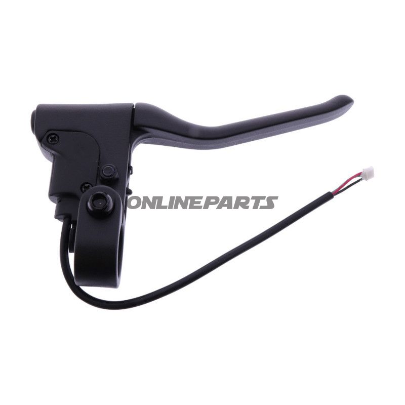 Das Produkt umfasst eine komplette Bremsenmontage, die sowohl Bremshebel als auch Bremslichtschalter beinhaltet, was die Installation schneller und effizienter macht. Das Bremsearmatur befindet sich am Lenker, wo es vom Fahrer betätigt wird, um das Bremssystem zu aktivieren. Es ist entscheidend, dass diese Komponente optimal funktioniert, um eine effektive Bremsung und somit Sicherheit während der Fahrt zu gewährleisten.