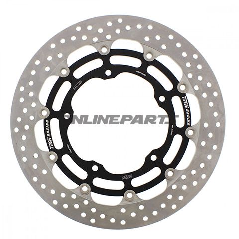 Bremsscheibe TRW MSW204SP / MPN 788.09.07 Schwimmendes SP-Design. Äußere Ringstärke 5,5 mm. CNC-gefräste Innenring i schwarz eloxiertem Billet-Aluminium. Passend für mehrere Modelle – Modell/Baujahr in der Liste prüfen.
