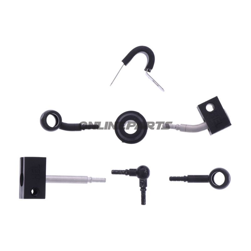 Das geflochtene Stahl-Bremsschlauchset Fittings in Schwarz ist darauf ausgelegt, die Bremsleistung des Systems bei bestimmten Honda MSX 125 A Modellen von 2017 bis 2020 zu verbessern. Dieses Set ist eine wichtige Komponente der Bremsanlage des Motorrads, da es eine stabile und effektive Bremskraft unter verschiedenen Fahrbedingungen gewährleistet.