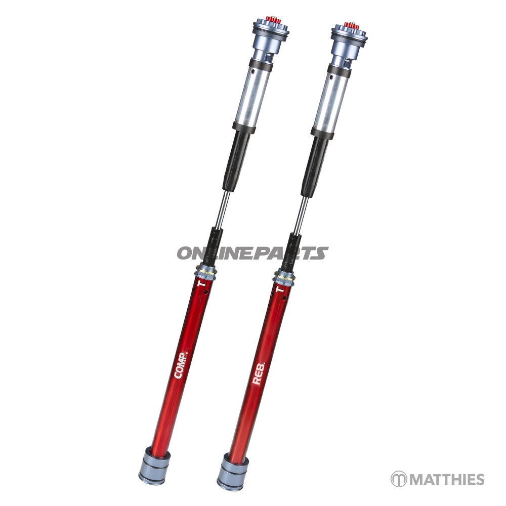 Dies ist ein internes Patronkit, also ein Einsatz, der im Gabelrohr montiert wird und die originale Dämpfungsmechanik ersetzt oder ergänzt. Die Patrone steuert den Ölfluss über einen 20 mm Dämpfstempel, was eine präzisere Kompressions- und Rebound-Dämpfung als viele Standardgabeln ermöglicht. Das System befindet sich im Gabelbein vorne und beeinflusst direkt die Radbewegung, den Kontakt zur Straßenoberfläche und die Fahrstabilität.