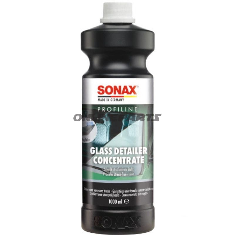 Produkt: Sonax Profiline DETAILER GLASS 1L (GTIN: 4064700336308, MPN: 556.50.22). Dies ist ein konzentriertes Glasreinigungs- und Schmiermittel, entwickelt für professionelle Werkstätten und Detailing-Arbeiten, formuliert für eine sichere und effektive Reinigung von Scheiben und Glasoberflächen an Motorrädern und Autos.