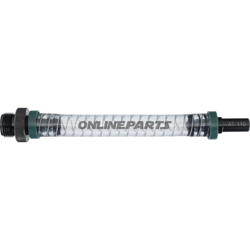 - Der Adapter fungiert als Zwischenstück zwischen dem Befüllschlauch oder der Pumpe und dem M18 x 1,5 Befüll-/Kontrollstopfen des Getriebes, sodass Öl dosiert werden kann, ohne unkontrolliert zu verschütten.