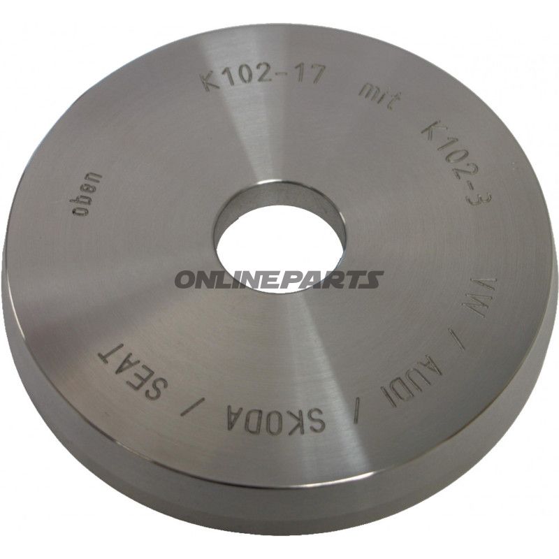Produkt: Einsatz K 102-17 für Federkompressor von SSW Schmack, vorgesehen zur Anwendung an Federbeinen und Stoßdämpferaggregaten auf VW-Plattformen und entsprechenden Modellen von Audi, Seat und Škoda.
