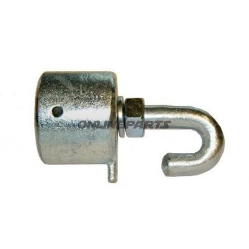 Dieses Endstück mit Haken ist für die Montage an Bruststangen von Pferdetrailern konzipiert und fungiert als letzter Befestigungspunkt für den Riemen oder die Kette, die das Pferd während des Transports in der richtigen Position hält. Das Produkt ist schraubbar, d. h. es wird über eine Schraubverbindung montiert und festgezogen, und es verfügt über einen integrierten Haken zum Anbringen von Befestigungsgliedern.