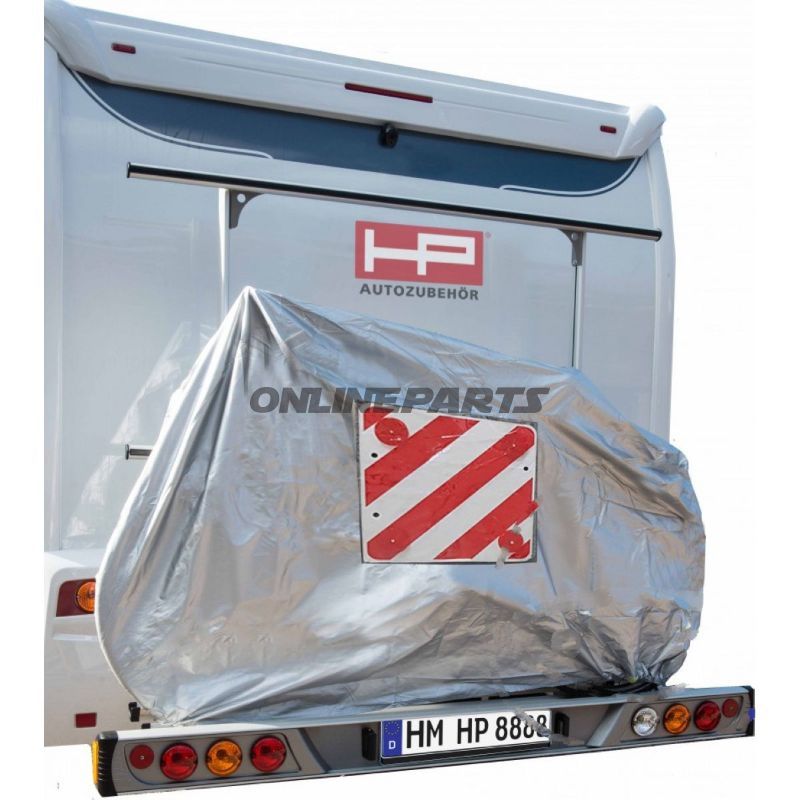 Produkt: Fahrradschutzhaube aus Oxford-Nylon (MPN: 298.00.69, GTIN: 4007928181589). Diese Abdeckung ist darauf ausgelegt, Fahrräder während des Transports auf Trägern oder bei kurzfristiger Aufbewahrung vor Wetter, Schmutz und Feuchtigkeit zu schützen.