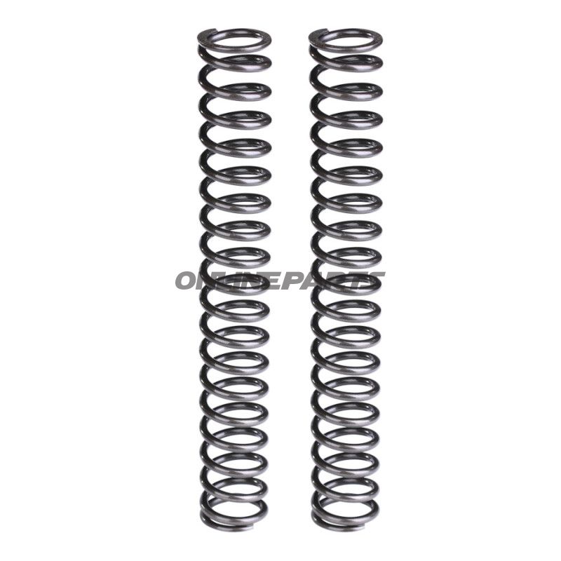 Die Federn bestehen aus hochwertigem Siliziumfederstahl. Die Materialwahl bietet eine Kombination aus guter Ermüdungsfestigkeit und Elastizität, was eine geringere Drahtstärke bei Erhalt der Haltbarkeit ermöglicht. Die Oberfläche ist vollständig poliert, und die Enden sind präzisionsgeschliffen (gehont), was die innere Reibung reduziert, Geräusche verringert und den Ölfluss in der Gabel verbessert – wesentlich für stabile Dämpfung und reduziertes Lufteinströmen.