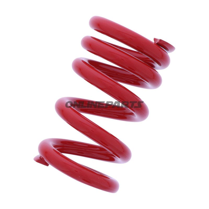 Die Feder besteht aus gehärtetem Federstahl mit Oberflächenbehandlung in roter Lackierung oder Pulverbeschichtung, um Korrosion und Verschleiß zu reduzieren. Die Konstruktion ist Mono (einfache Federform) mit einer progressiven Abstufung oder variierenden Drahtdurchmessern/Spiralformen, was die variable Federkonstante (200/350 Nm) ergibt. Die Materialauswahl ist typischerweise darauf ausgelegt, wiederholte zyklische Belastungen zu widerstehen und die Elastizität über viele Kompressionen zu bewahren.