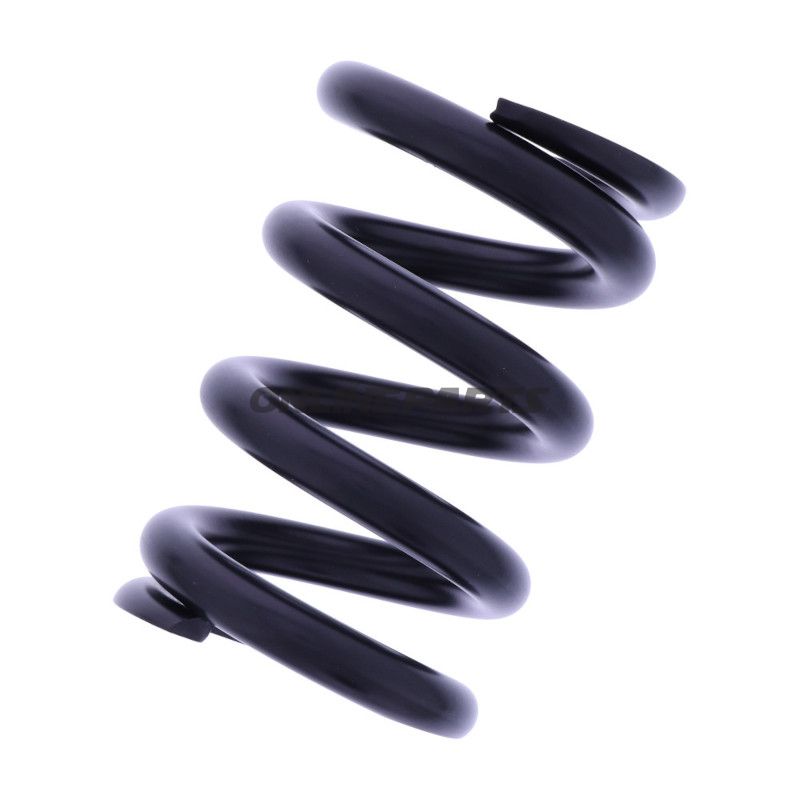 Die Feder besteht aus hochfestem Stahl mit Oberflächenbehandlung, die Korrosion und Verschleiß unter normalen Einsatzbedingungen reduziert. Die lineare Aufwicklung und die Materialwahl liefern eine vorhersehbare Kraft-/Kompressionskurve, was bei der Abstimmung der Dämpfercharakteristik wünschenswert ist. Die Oberfläche ist schwarz lackiert oder pulverbeschichtet, um die Beständigkeit gegen Umwelteinflüsse zu verbessern; das schwarze Finish ist primär funktional, trägt aber auch zu einer einheitlichen Optik in montierten Einheiten bei.