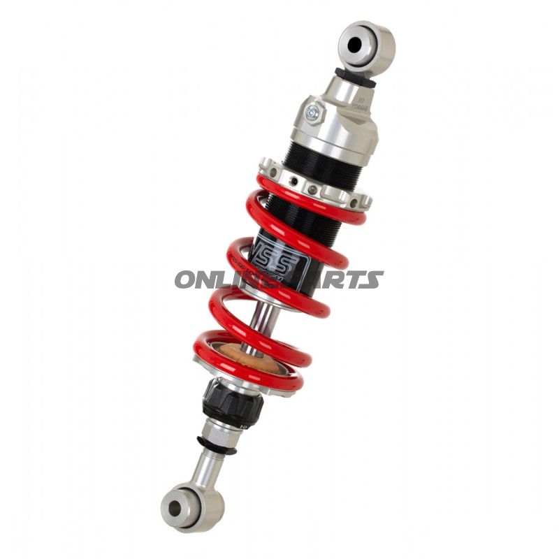 Die Federvorspannung wird mit einer Grubenschraube gesichert, was sicherstellt, dass die Einstellung während des Gebrauchs stabil bleibt. Darüber hinaus kann die Länge des Dämpfers um +/- 5 mm angepasst werden, was noch mehr Flexibilität bei der Anpassung an Ihr Motorrad bietet.