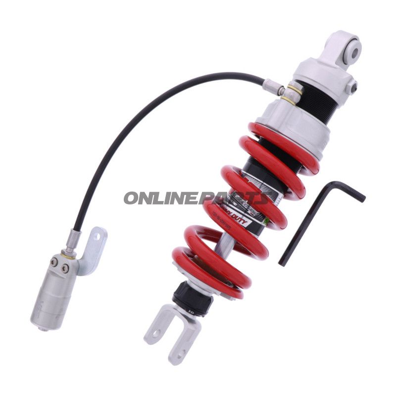 Der Stoßdämpfer ist mit einem gefrästen Aluminiumgehäuse gefertigt, das ein geringes Gewicht und hohe Haltbarkeit gewährleistet. Die hydraulische Einstellmechanik ist über einen Schlauch zugänglich, was eine einfache Anpassung der Federvorspannung ermöglicht, ohne den Stoßdämpfer vom Motorrad entfernen zu müssen. Mit 30 Klicks zur Rückschlagverstellung können Sie die Reaktion des Stoßdämpfers präzise anpassen, was besonders wichtig für Touring-Motorräder ist, die häufig mit variierenden Straßenbedingungen und Lasten umgehen müssen.