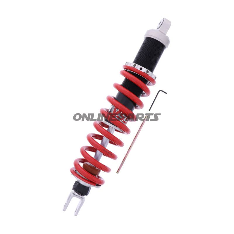 Das Gehäuse des Stoßdämpfers besteht aus gefrästem Aluminium, was eine Kombination aus Festigkeit und geringem Gewicht bietet. Die verstellbare Federvorspannung und der Rebound ermöglichen es dem Mechaniker, die Reaktion des Stoßdämpfers an die Vorlieben des Fahrers und die Fahrbedingungen anzupassen. Die Einstellung kann in 30 Klicks vorgenommen werden, was präzise Einstellungen für optimale Leistung ermöglicht.