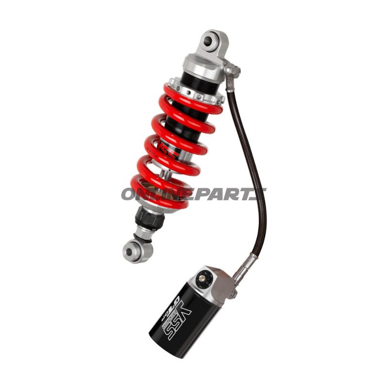Funktion und Platzierung: Dies ist ein hinten montierter Monofeder-Stoßdämpfer, der dazu dient, vertikale Bewegungen zwischen Rahmen und Hinterrad zu absorbieren und sowohl den Arbeitsbereich der Feder als auch die Dämpfungscharakteristik während Beschleunigung, Bremsen und Kurvenfahrten zu steuern. Die obere und untere Aufhängung ist Auge-zu-Auge (10 mm Innendurchmesser), was sie für Standardmontagen an Rahmenpunkten für kleinere Sportmaschinen geeignet macht.