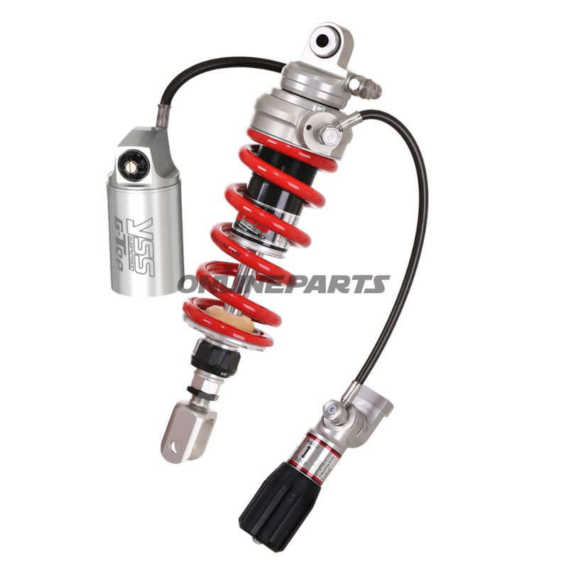 Der Körper des Stoßdämpfers ist aus gefrästem Aluminium gefertigt, was eine leichte, aber robuste Konstruktion ermöglicht. Die hydraulische Einstellung von sowohl Vorspannung, Rückfederung (30 Klicks) als auch Dämpfung (30 Klicks) erlaubt es dem Mechaniker oder Motorradbesitzer, die Federung nach persönlichen Vorlieben und Fahrbedingungen anzupassen. Die Einstellung der Federvorspannung ist bequem über einen Schlauch zugänglich, was die Anpassung erleichtert und eine praktische Funktion für diejenigen darstellt, die ihr Fahrerlebnis optimieren möchten.