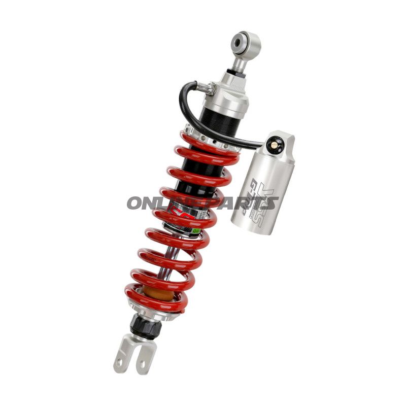 Der Stoßdämpfer ist mit einem gefrästen Aluminiumgehäuse konstruiert, das ein geringes Gewicht und hohe Festigkeit gewährleistet. Er verfügt über einen Gasdämpfer, der hilft, Stöße und Vibrationen während der Fahrt zu reduzieren. Die Einstellung der Federvorspannung kann einfach mit einer Grubscrews vorgenommen werden, und er ist mit drei verschiedenen Einstellmöglichkeiten ausgestattet: Vorspannung, Zugstufe (30 Klicks) und Druckstufe (30 Klicks). Dies ermöglicht eine Feinabstimmung der Federung in Bezug auf die Fahrbedingungen und die Vorlieben des Fahrers.