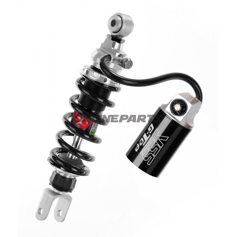 Dies ist ein verstellbarer Mono-Stoßdämpfer von YSS (GTIN 8859518058018, MPN 789.58.48) mit gasgefüllter Dämpfungskammer und separatem Reservoir. Der Stoßdämpfer wird als Hinterdämpfer mit oberem Auge und unterer Gabelbasis montiert; seine Hauptfunktion besteht darin, die Arbeit der Feder bei Beschleunigung, Bremsen und Straßenunebenheiten zu kontrollieren sowie den Kontakt zwischen Hinterrad und Fahrbahn durch variable Kompression und Rückfederung zu erhalten.
