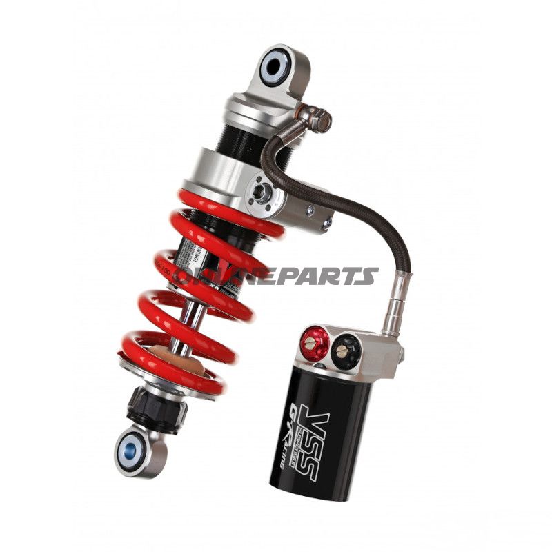 Federbein Mono YSS MX456-265HRW-13-858 Gasdämpfer für Ducati Hyperstrada 821. Einstellbar i förbelastning, rebound 30 Klick und Kompression Hoch/Niedrig 30 Klick. Ösenbefestigung, Länge 265 mm, gefrästes Aluminium.