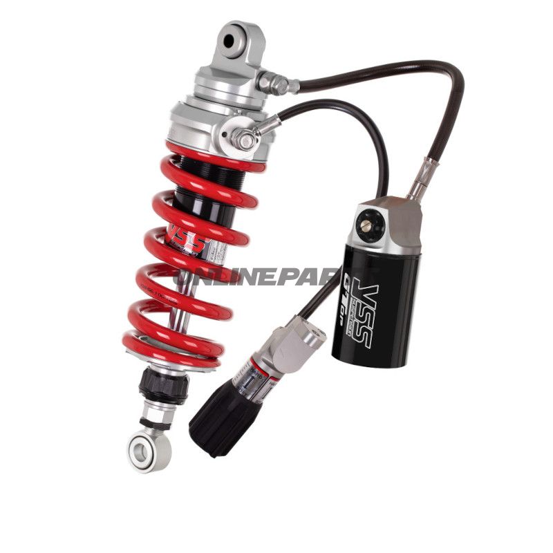 Justeringen af fjederforspændingen er forbundet til støddæmperen med en slange for nem adgang.