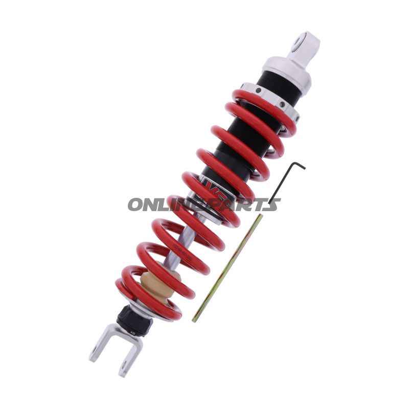 Das Federbein ist mit einem gefrästen Aluminiumgehäuse konstruiert, das sowohl Stärke als auch ein geringes Gewicht gewährleistet. Die verstellbare Federvorspannung wird mit einer Schraube gesichert, was es ermöglicht, die Federung an das spezifische Gewicht und den Fahrstil anzupassen. Das Einstellwerkzeug für die Anpassung ist im Lieferumfang enthalten, sodass Sie das Federbein problemlos ohne zusätzliches Werkzeug anpassen können.