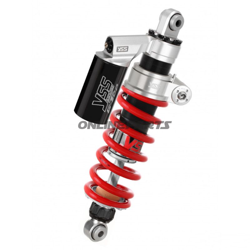 Federbein Mono YSS MG456-380HRC-28-858 Hydraulisch einstellbares Federbein för Moto Guzzi V85 850 TT 2019–2022. Oberes Auge Ø10 mm, unteres Auge Ø26 mm, Länge 380 mm, gefrästes Aluminiumgehäuse.