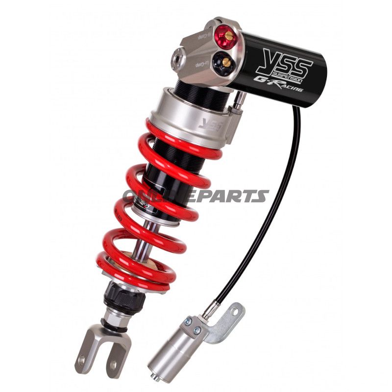 Federbein Mono YSS MG456-325H1RWL10I858 Einstellbares Gasdämpfer für Sportmaschine. Gefrästes Aluminiumgehäuse, Auge 10 mm, Länge 320–330 mm, hydraulische Vorspannung, Rebound und Compression 30 Klick.
