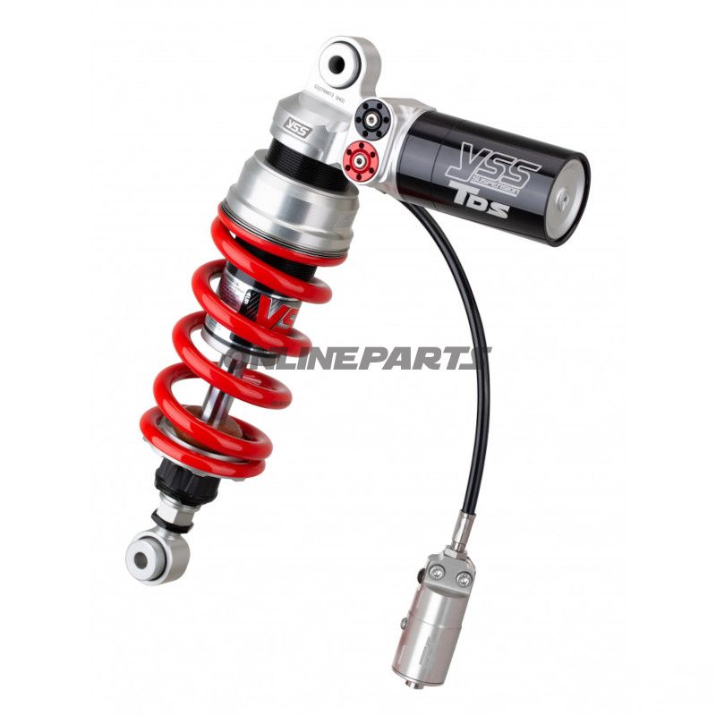 Der verstellbare Mono-Stoßdämpfer YSS TDS ist sowohl für den täglichen Gebrauch als auch für den Rennsport konzipiert, was ihn ideal für Motorräder macht, die präzise Kontrolle und Komfort unter verschiedenen Fahrbedingungen erfordern. Dieser Stoßdämpfer wird im Heck des Motorrads montiert und spielt eine entscheidende Rolle für die Federung, die eine stabile Fahrt und verbesserten Grip gewährleistet.