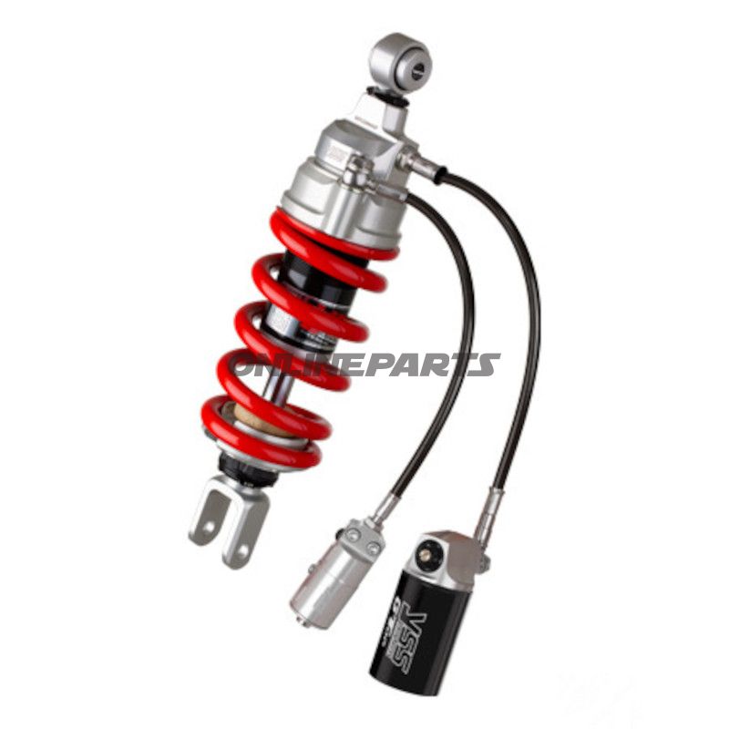 Das Monofeder YSS hat einen gefrästen Aluminiumkörper, der eine gute Kombination aus Stärke und geringem Gewicht bietet. Die hydraulische Einstellung der Feder-Vorspannung ist über ein Ventil zugänglich, das mit einem Schlauch verbunden ist, was es einfach macht, die Einstellungen anzupassen, ohne das Federbein demontieren zu müssen. Das Federbein bietet auch eine verstellbare Länge von bis zu +10 mm, sodass Sie die Geometrie Ihres Motorrads für bessere Handhabung und Stabilität optimieren können.