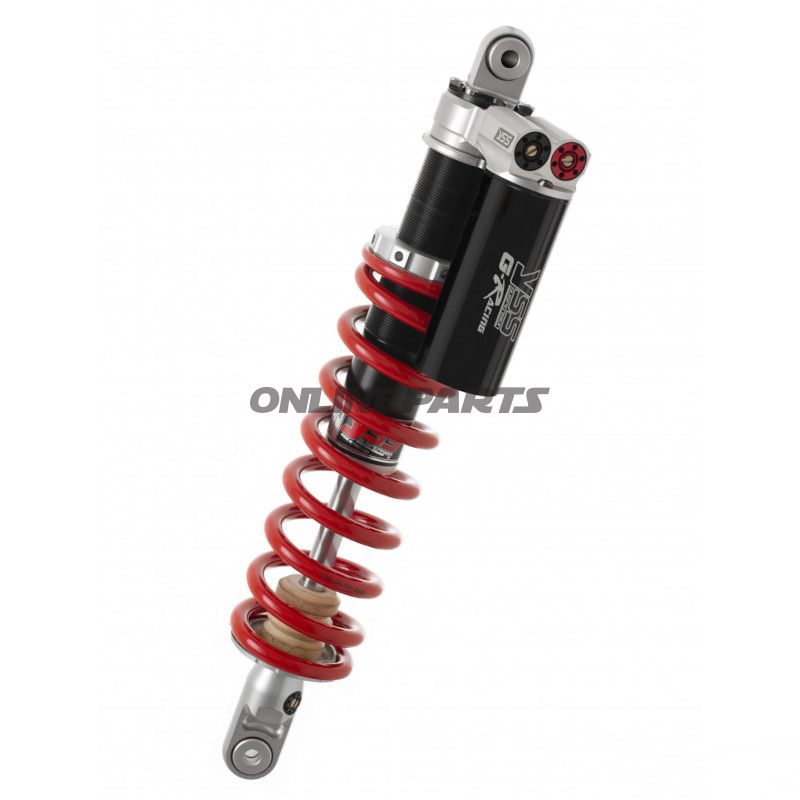 Das Federbein ist mit einem gefrästen Aluminiumkörper konstruiert, was ihm sowohl Stärke als auch ein geringes Gewicht verleiht. Der verstellbare Dämpfer ermöglicht es dem Mechaniker oder Motorradbesitzer, die Vorspannung, den Rückstoß (30 Klicks) und die Kompression (hoch/niedrig 30 Klicks) anzupassen, was es ermöglicht, die Federung an spezifische Fahrbedingungen und persönliche Vorlieben anzupassen. Die Einstellung der Federvorspannung erfolgt über eine Grubscrews, was eine zuverlässige und präzise Einstellung gewährleistet.