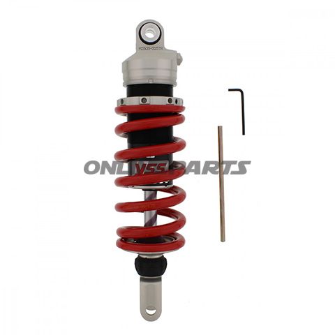 Das Federbein ist mit einem lackierten Aluminiumgehäuse konstruiert, das eine gute Balance zwischen Stärke und Gewicht gewährleistet. Die leichten Eigenschaften des Aluminiums helfen, das Gesamtgewicht des Motorrads zu reduzieren, was die Handhabung und Fahreigenschaften verbessern kann. Das einstellbare Design ermöglicht es dem Mechaniker, die Einstellungen sowohl für die Straßenfahrt als auch für sportliches Fahren anzupassen.