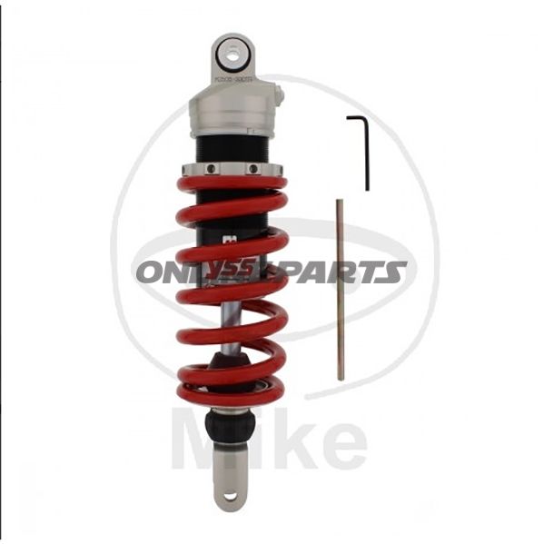 Das Federbein hat einen lackierten Aluminiumkörper, der eine Kombination aus geringem Gewicht und hoher Festigkeit bietet. Es ist mit einem Gasdämpfer konstruiert, der eine effektive Dämpfung unter verschiedenen Fahrbedingungen gewährleistet. Die Einstellung der Federvorspannung und des Rebounds kann bis zu 30 Klicks erfolgen, was die Anpassung der Federung an den spezifischen Fahrstil und die Straßenverhältnisse ermöglicht.