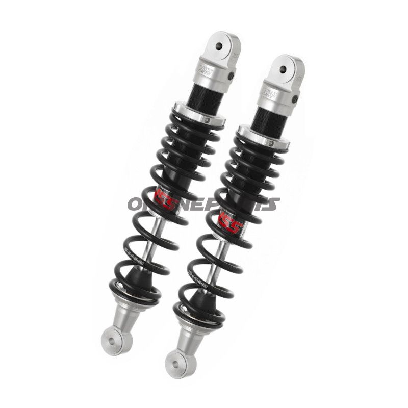 Federbein YSS RE302-340T-59-88F Hinteres Federbein med gefrästem Aluminiumgehäuse. Einstellbare Vorspannung, Öseninnendurchmesser 10 mm, Länge 340 mm. Passend für AJS Highway Star 400 (2020).