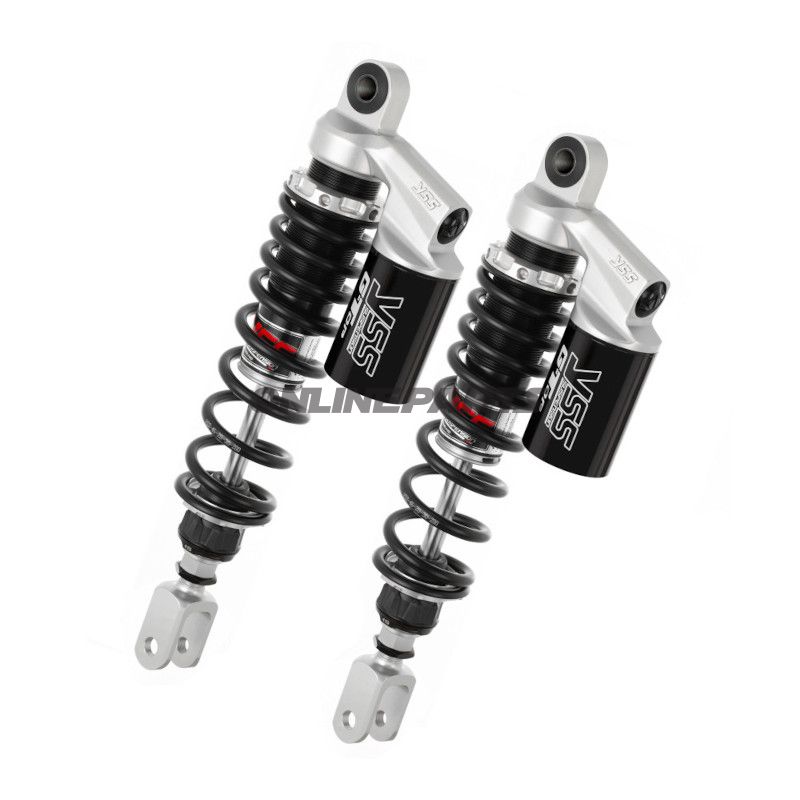Federbein YSS RG362-340TRCL-18-888 Einstellbares Stoßdämpfer mit gefrästem Aluminiumgehäuse. Vorspannung, Zugstufe und Druckstufe 30 Klick. Länge verstellbar ±5 mm. Passend für Honda CB 750 F 1980–1982.