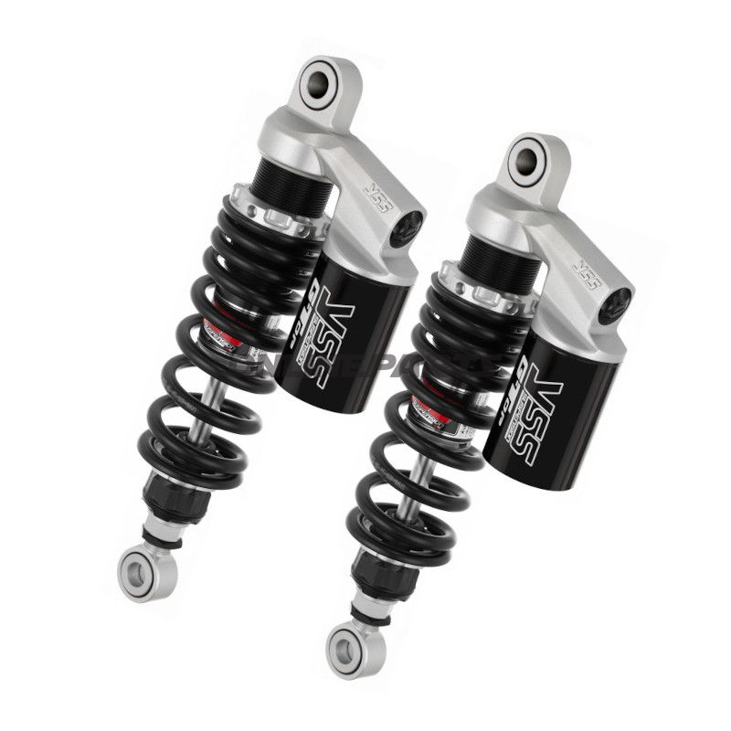 Federbein Stereo YSS RG362-300TRCL-18-888 Einstellbares Hinterrad-Federbein für Kawasaki ER 500. Gefräster Alu-Körper, Gasdämpfer, verstellbare Länge +/-5 mm sowie Vorspannung, Rebound und Compression.