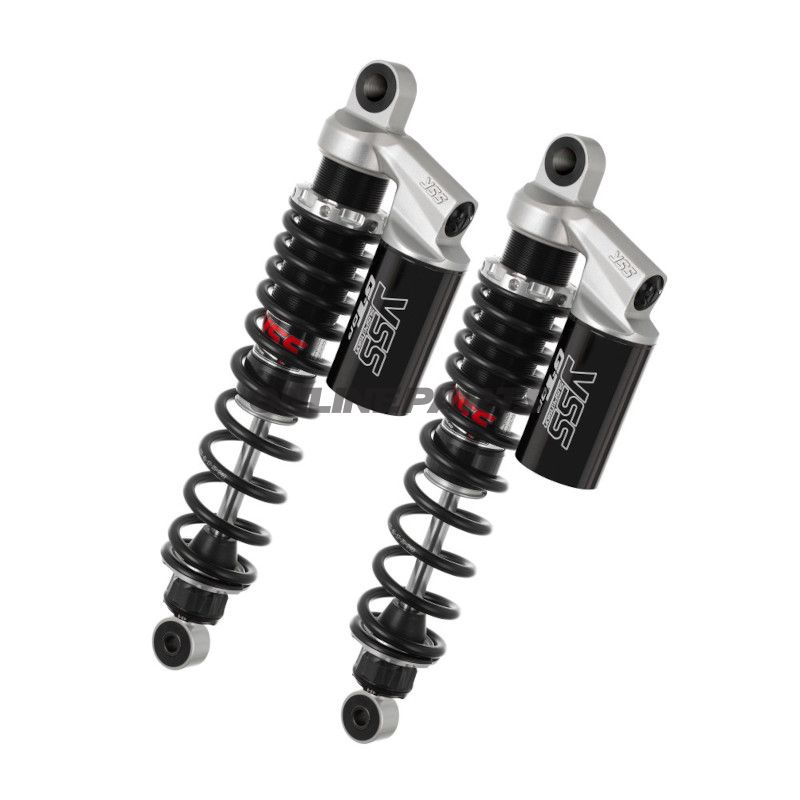 Federbein YSS RG362-370TRC-14-888 Einstellbares Gas-Federbein med gefrästem Aluminiumgehäuse. Rebound 30 Klick, Compression 30 Klick, Federvorspannung verstellbar. Passend für Kawasaki ZRX 400 E (1998).