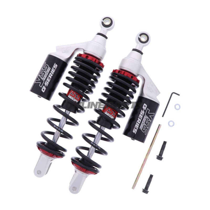 Federbein Stereo YSS TC302-335TL-07-888 Verstellbares Federbein för leichte Motorräder/Roller. Gefrästes Aluminiumgehäuse, Vorspannung über Feingewinde und Senkschraube. Passend für Yamaha GPD 125 A, MBK Ocito 125 2015–2016.