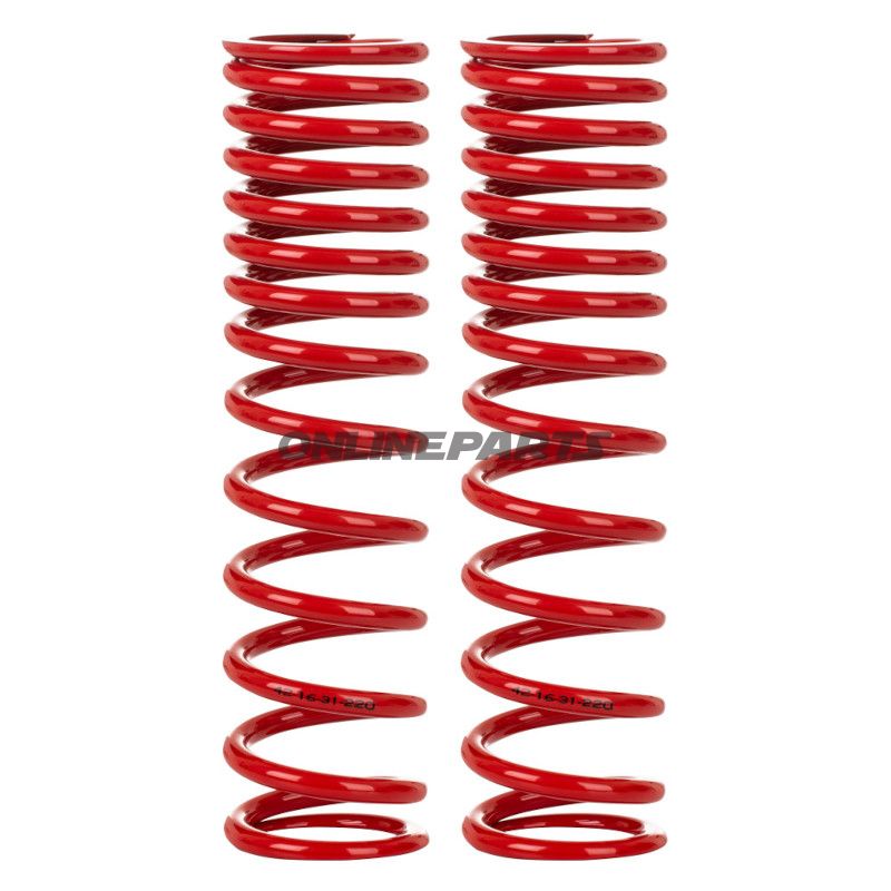 Produkt: Federpaket von YSS mit zweistufig progressiver Bauweise, vorgesehen zur Montage in YSS-Gabeln mit einem Innendurchmesser von 42 mm. Dieses Set (GTIN: 8859518017008, MPN: 789.35.61) ist darauf ausgelegt, die Federcharakteristik im Vorschub des Stoßdämpfers zu verändern und eine stufenweise Steifigkeitsänderung während der Kompression zu ermöglichen.