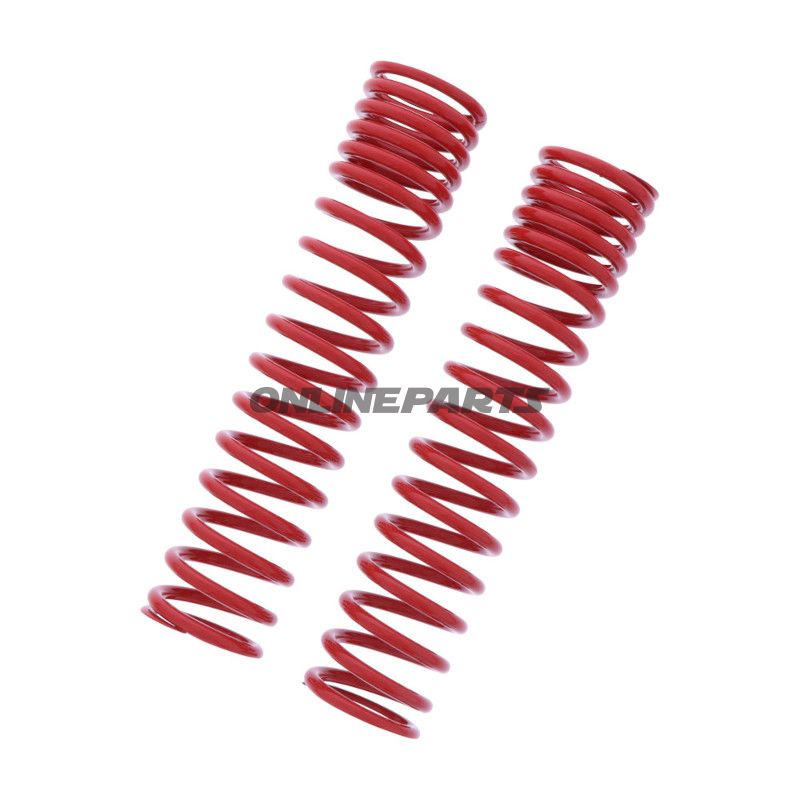 Diese Kombinationsfeder wurde für YSS-Gabeln mit einem Innendurchmesser von 40 mm entwickelt und ist als Twin (zweistufiges) progressives Feder-System ausgeführt. Die rote Beschichtung kennzeichnet die Farbcodierung des Herstellers für diese spezifische Kraftkurve und den Korrosionsschutz.