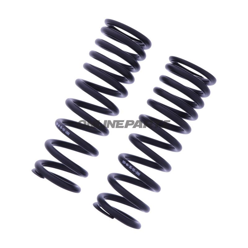 Produkt: Federkit von YSS (Modell 46-35-55-200). Dieses Set ist für den Einsatz in Stoßdämpferstiveren mit einem Innendurchmesser von 46 mm entwickelt worden und wird in schwarzer Ausführung geliefert. GTIN 8859518027243 und der Herstellernummer (MPN) 789.38.17 liegen dem Produkt bei und können zur Identifikation von Ersatzteilen und zur Suche im Bauregister verwendet werden.