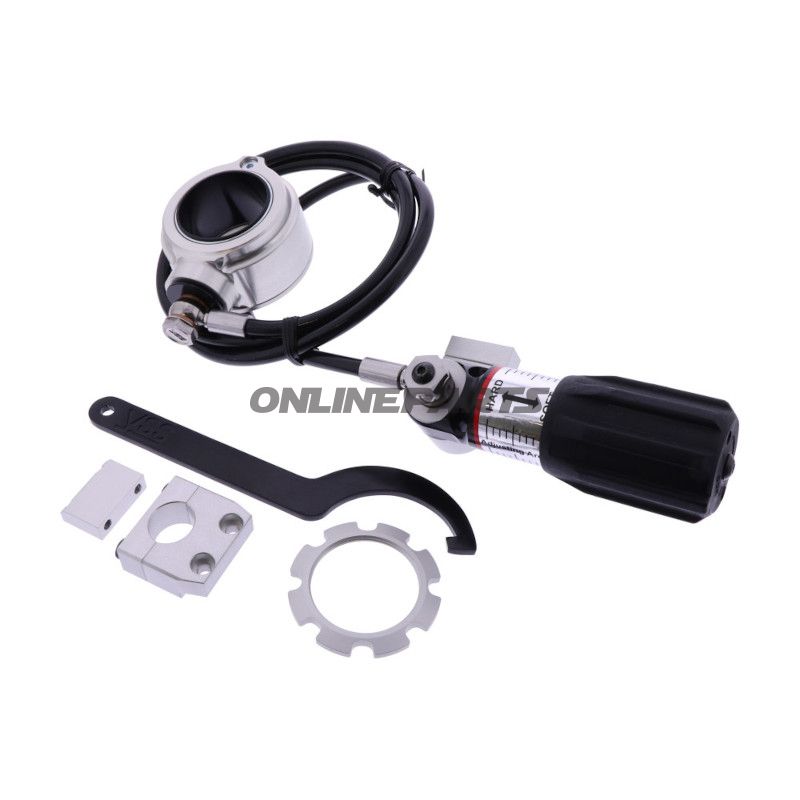 Produktfunktion: Diese hydraulische Außenfeder-Druckvorrichtung von YSS wird verwendet, um die Vorspannung (Preload) der Motorradfahrwerksfedern präzise einzustellen. Eine hydraulische Preload-Tensioner ermöglicht die Einstellung des Federverhältnisses, ohne die gesamte Stoßdämpfer-Einheit demontieren oder die Feder manuell mit Werkzeugen komprimieren zu müssen, was das Feinabstimmen des Fahrwerks bei Arbeiten in der Werkstatt oder Garage erleichtert.