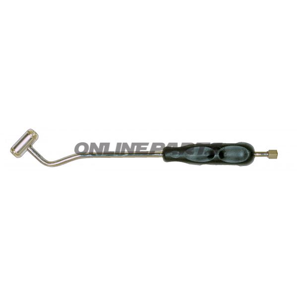Produktübersicht: Dies ist ein komplet Vollstik mit Schlauch von Blitz Rotary, vorgesehen als Ersatzteil für standmontierte Reifenfüllmesser, Modell Pneustar 2. Das Produkt (MPN: 677.44.75, GTIN: 4057612352351) ist darauf ausgelegt, Zugang zu Ventilen zu ermöglichen, auch bei eng platzierten Ventilfelgen, ohne dass der Benutzer schmutzige Hände bekommt.