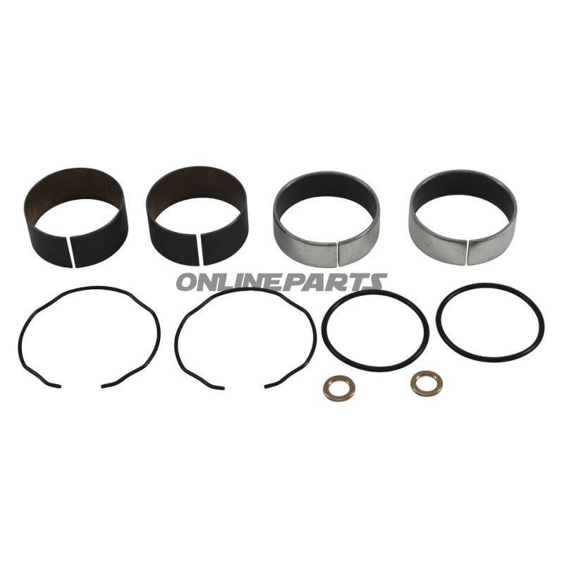 Die Materialien in diesem Set wurden ausgewählt, um eine langanhaltende Leistung und Widerstandsfähigkeit gegen die Kräfte zu gewährleisten, die während der Fahrt auf die Gabel wirken. Die Gleitbuchsen sind so konzipiert, dass sie die Reibung minimieren, was zu einer gleichmäßigeren und stabileren Fahrt führt, während die Dichtungsringe helfen, Leckagen von Gabelöl zu verhindern, das für eine korrekte Federung entscheidend ist.